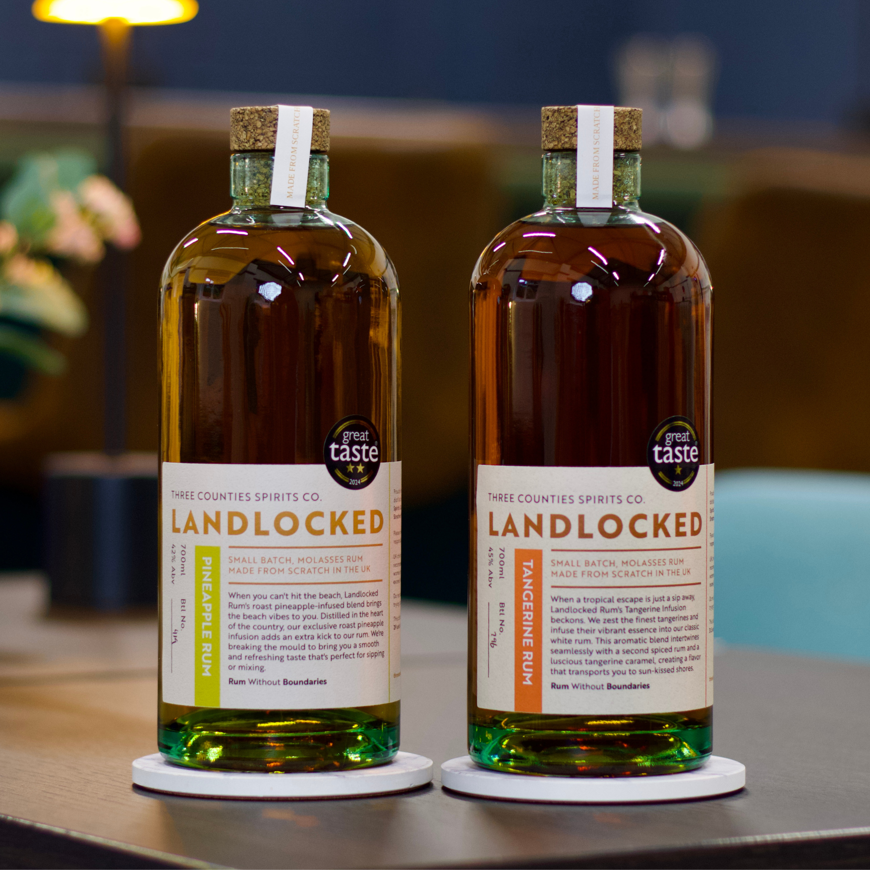 Landlocked English Pineapple Rum: Award-winning and utterly unique. We spit-roast whole pineapples over coals before infusing them into our rum. The result is a naturally sweet, caramelised pineapple depth perfect for a sophisticated Piña Colada or simply with Ginger Ale.