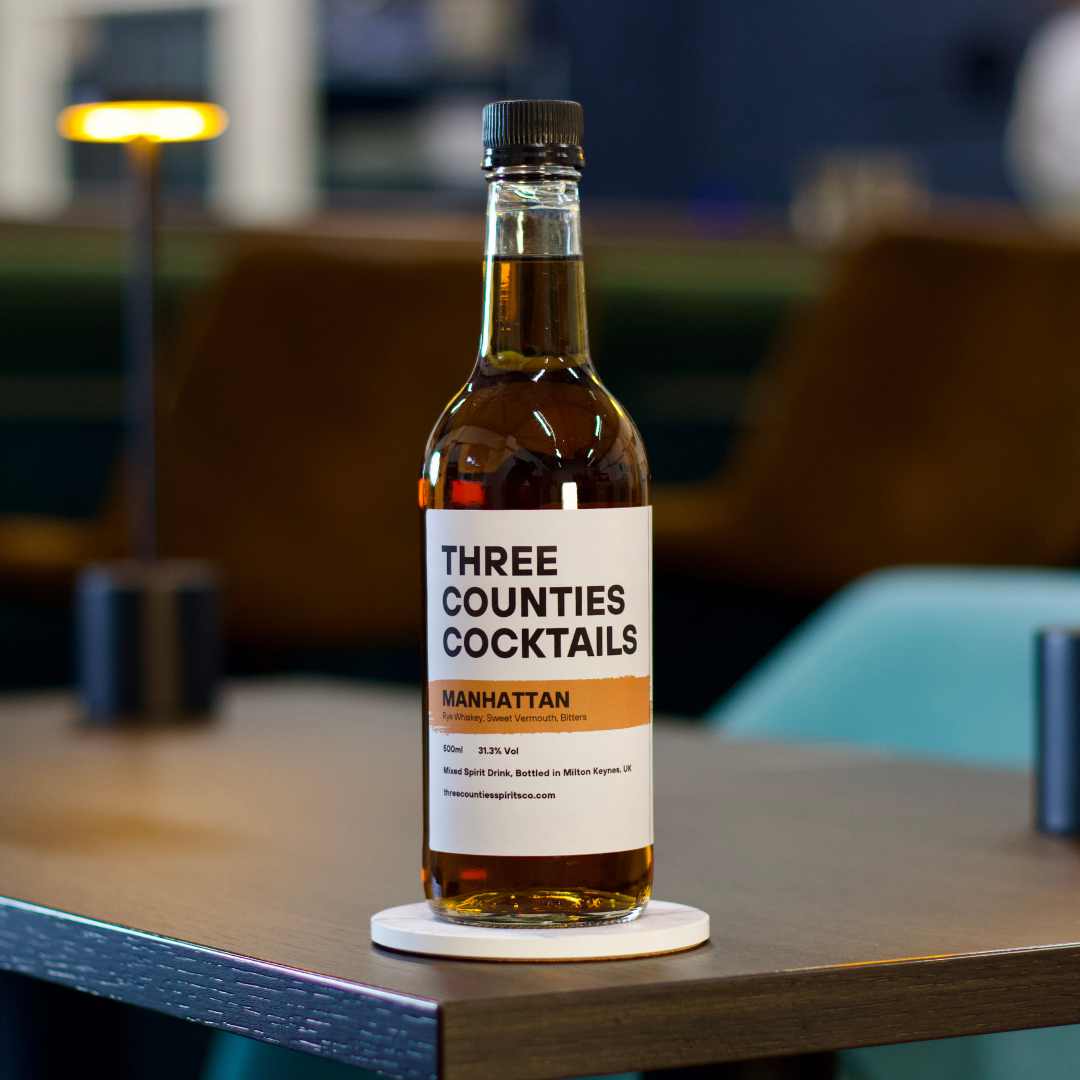 The ultimate spirit-forward classic: a sophisticated blend of Rye Whiskey, sweet vermouth, and Angostura bitters, bottled to perfection.